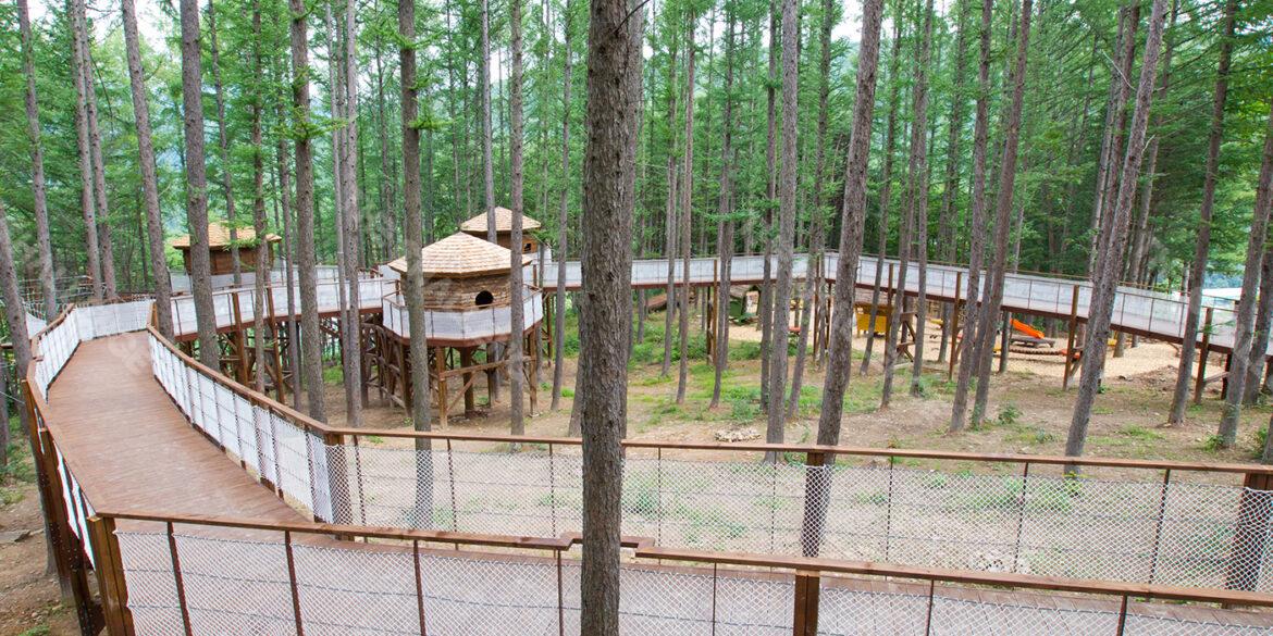 나무 사이에 설치된 테라스를 따라 숲속 위를 걷는 듯한 기분을 가족 단위로 함께 어울려 즐길 수 있는 경관 체험 시설