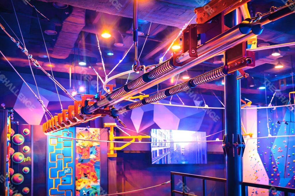 실내에서 즐기는 새로운 차원의 롤러코스트형 짚라인.