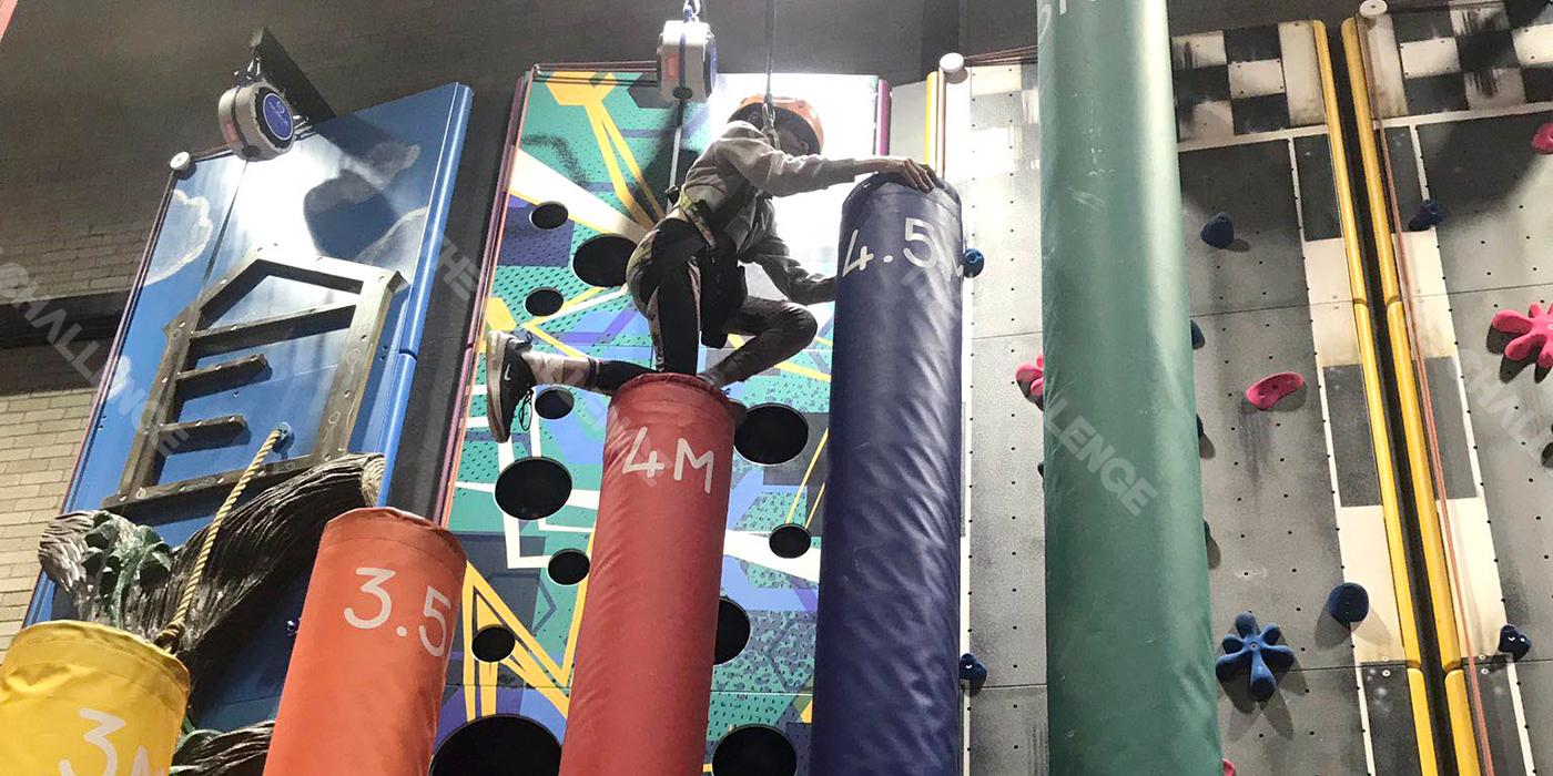 체험자가 지상에서부터 계단식으로 오르는 클라이밍