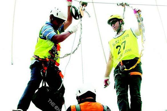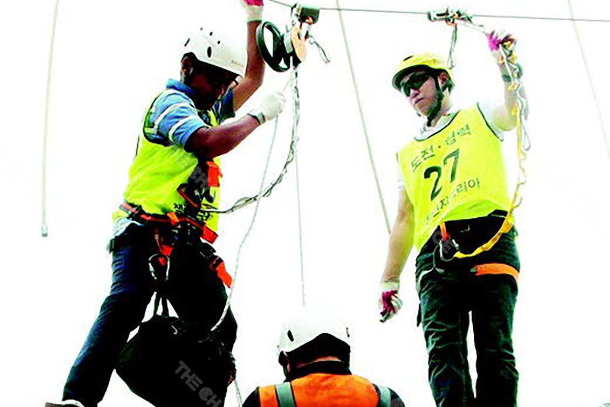 챌린지코스 구조장비는 하이코스나 챌린지 타워 코스를 진행하는 중, 체험자가 높이에 대한 심리적 부담으로 인해 공황 상태에 빠지거나 코스 중간에 고립되는 비상 상황에 대비하여 설계된 구조 전용 안전장비입니다. 이 장비는 위급 상황 발생 시 체험자를 안전하고 신속하게 구조하여, 시설의 안정성을 확보하고 이용객들의 불안감을 해소하는 데 필수적인 역할을 합니다.