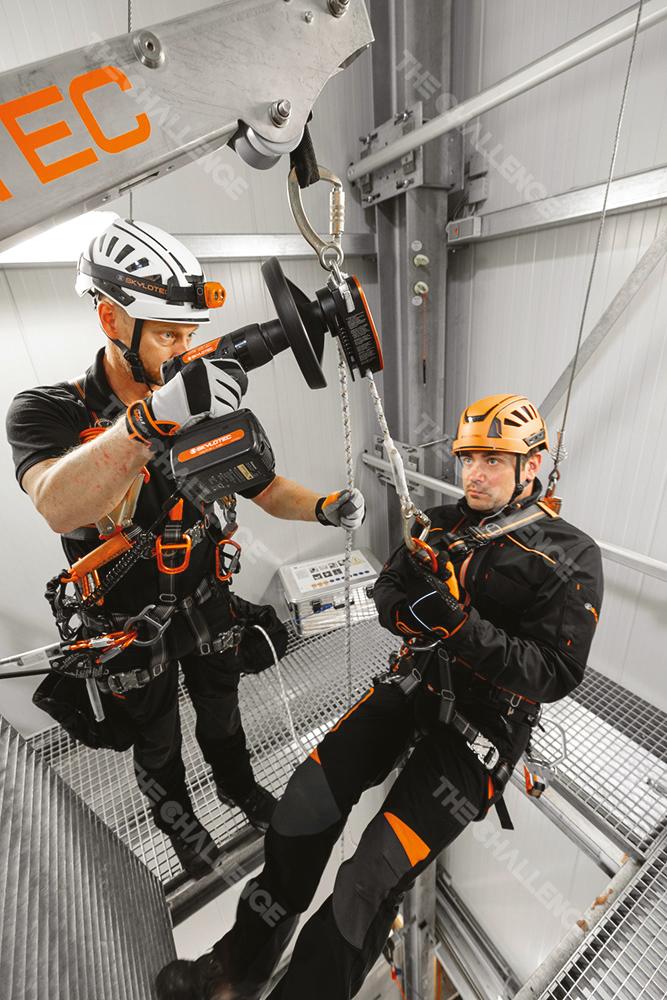 가벼운 자동 구조 장치로 원심력 조절 브레이크로 하강 시 일정한 속도를 유지할 수 있으며 한번에 500m 높이에서 250kg 한도 내 두 명을 동시에 구조할 수 있습니다.