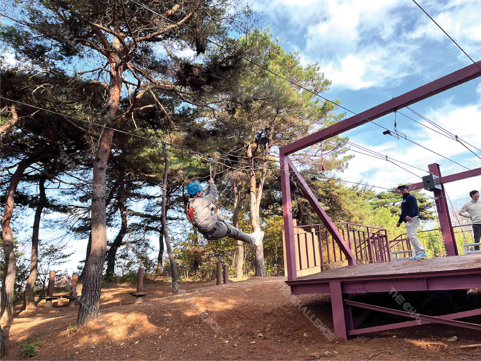 이번에 조성되는 시설 중 대표적인 어드벤처 시설은 집와이어입니다. 총 90m 길이의 3개 라인으로 구성된 집와이어는 괴강을 배경으로 짜릿한 하강을 경험할 수 있는 체험형 시설입니다. 이와 함께 조성되는 숲 체험시설은 총 168m 길이, 24개 코스로 이루어진 챌린지 시설입니다. 이용객들은 숲속을 걸으며 로프, 다리 등 다양한 장애물을 극복하며 모험과 성취감을 동시에 느낄 수 있습니다. 이는 특히 청소년과 가족 단위 방문객에게 큰 인기를 끌 것으로 예상됩니다.
