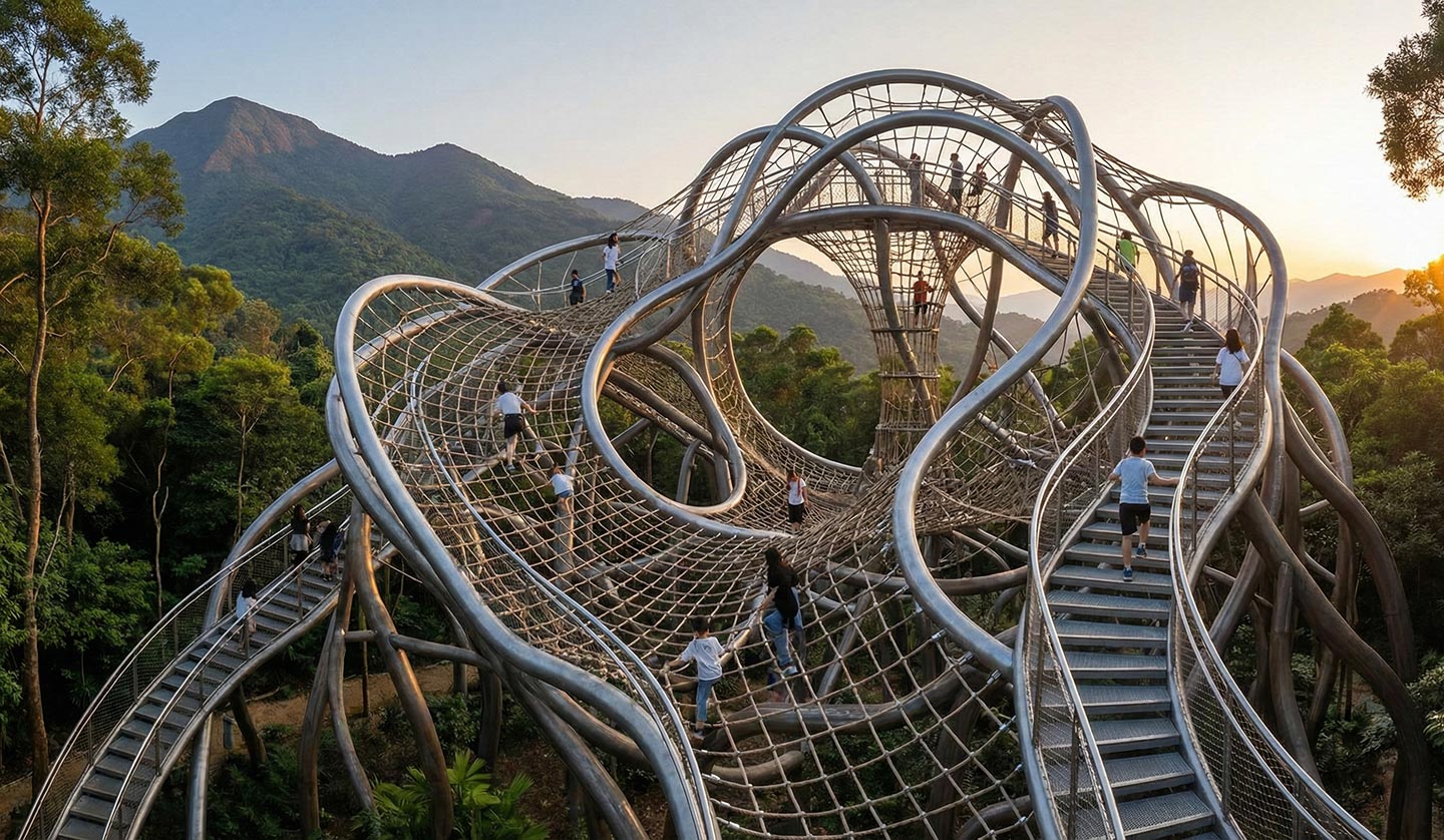 자연의 유려한 곡선을 닮은 구조물, AI의 계산으로 탄생한 가장 완벽한 형태의 모험 공간