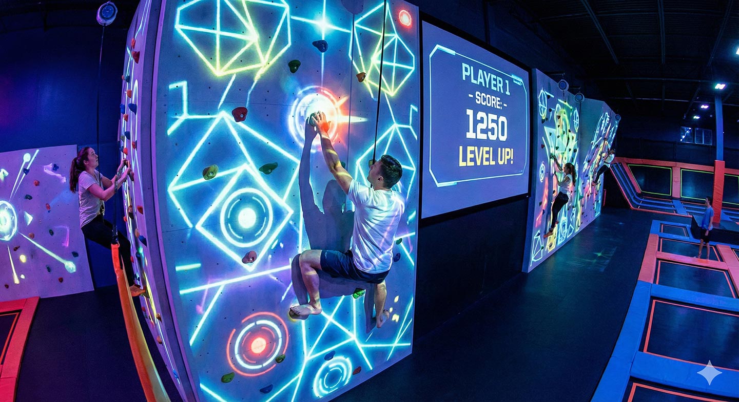 “벽을 오르는 순간 게임이 시작된다, 2025년 실내 어드벤처는 AI와 함께 뛰는 거대한 오락실“