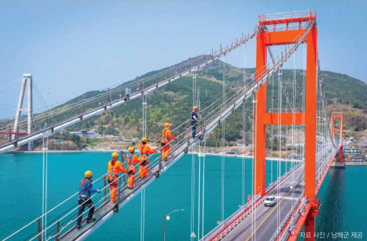 경남 남해군의 대표 상징물인 남해대교에 주탑을 오르는 브릿지 클라임 시설을 더챌린지 설치하고 지난 4월18일과 19일 남해군에서 체험행사를 진행했습니다. 체험객들은 국내 첫 현수교인 남해대교를 안전빌레이 장비를 착용하고서 주탑까지 안전하게 오르며 특별한 체험을 경험하였습니다. 앞으로도 많은 관심을 부탁드리며 당사는 새로운 도전과 모험을 향해 나아가겠습니다.