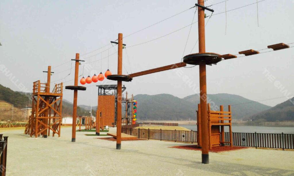 충청남도 부여군 서동요 국민테마파크에 더챌린지가 짚라인과 어드벤처타워를 설치하여, 백제의 역사와 문화를 간직한 테마파크에 현대적인 레저 콘텐츠를 더했습니다. 이 시설들은 어드벤처타워를 출발점으로 한 짚라인을 통해 테마파크의 전경을 한눈에 보며 활강하는 즐거움을 제공합니다. 이 프로젝트는 단순한 레저 시설 설치를 넘어, 역사 교육과 모험 활동이 결합된 새로운 형태의 관광 명소로 발전하는 데 크게 기여하고 있습니다. 더챌린지의 독창적인 기획력과 안전한 시공 기술이 결합된 이 시설은 서동요 테마파크를 찾는 방문객들에게 잊지 못할 추억과 즐거움을 선사합니다.