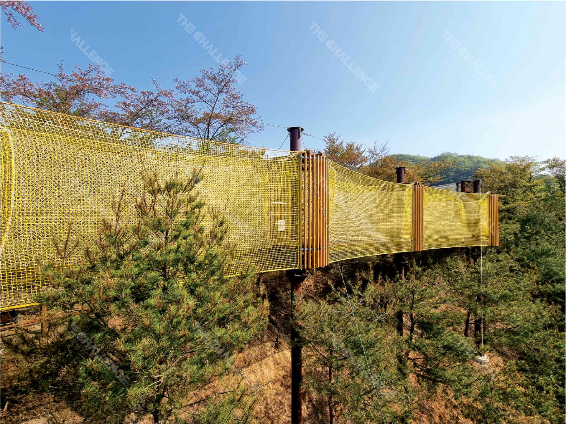 충청남도 청양군의 대표 관광지인 천장호수에는 더챌린지가 시공한 혁신적인 에코워크 네트 브릿지가 자리하고 있습니다.